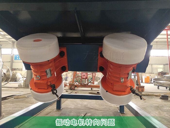 直線篩時使兩臺臥式振動電機(jī)作為振動篩,電機(jī)的轉(zhuǎn)向和分為正轉(zhuǎn)和反轉(zhuǎn)兩種,正常情況下兩臺電機(jī)的轉(zhuǎn)向是相反方向的,但如果用戶在接電時正負(fù)極接錯就會引起電機(jī)同向旋轉(zhuǎn)就會出現(xiàn)篩面物料不走料的問題;