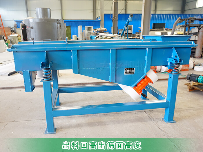 在設(shè)計(jì)直線篩時如果出料口高于篩面在生產(chǎn)過程中就會出現(xiàn)物料停滯在篩面不下料的問題。
